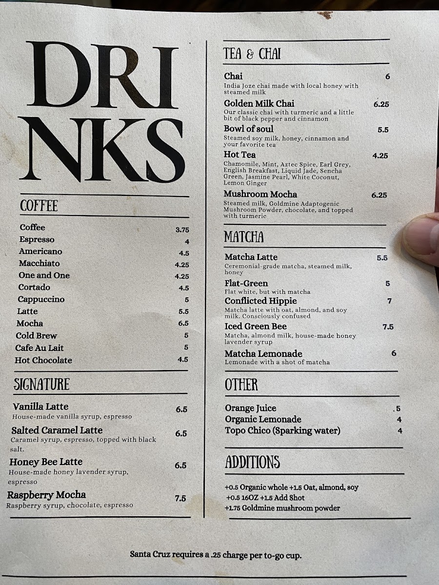 “ One of my favorite cafes in the Bay Area! This Santa Cruz staple features amazing coffee, stellar food, great vibes, and a super friendly team. I dropped by for brunch during a weekend beach trip, and I was blown away by how good everything was. The coffee is fantastic — nutty, rich, and smooth — and they have a great selection of beans you can take home to try. I love the plain taste of espresso, so I loved their cappuccino (closely followed by the latte), but they also have a bunch of other fun drinks for those who would rather not get hit with a strong taste of coffee. Their raspberry mocha has an exceptional raspberry flavor that goes wonderfully with the chocolate and slight notes of coffee in the background. The matcha was sweet but quite tasty and refreshing, especially when iced. The food was somehow even more impressive than their drinks. We tried a smattering of dishes, including the tomato galette, brunch bowl, and loaded avocado toast. The galette was outstanding — the combo of buttery, flakey pastry with the salty cheese, herbaceous and nutty pesto, and juicy, perfectly roasted tomatoes was completely unbeatable. The larger, entree-style dishes were just as impressive. I loved the loaded avocado toast, which featured a very generous helping of avocado, two perfectly poached eggs, greens, and chili oil over a springy, flavorful slice of focaccia. The egg yolks were perfectly runny, the micro greens offered a lovely pop of freshness, and the chili oil really helped bring the whole dish together. It wasn’t particularly spicy, but had a great umami and deeply savory flavor — I’d honestly love to have double or triple the amount of chili crisp. The bread wasn’t my favorite focaccia in the world, but it served as a wonderful vessel for everything else. I also loved the brunch bowl, which was a hearty and delicious combo of quinoa, greens, watermelon radish, tomatoes, avocado, walnuts, and a poached egg. Every element clearly added something to the dish — I loved the crunch from the walnuts and radish, pop of freshness from the veggies, nuttiness and heft from the quinoa, and creaminess from the runny egg yolk and avocado. It was also served with a lovely creamy lemon dressing, which helped bind together and brighten up the whole dish. To top off an already amazing food and beverage experience, the space is also wonderful. It’s quite spacious inside, but this spot is so popular that it often fills up. They have a large garden patio in the back with extra seating, although that tends to get pretty crowded too. If you manage to snag a spot, though, it’s a really cozy place to settle down for a bit. The staff is super friendly, helpful, and efficient. It often takes a little bit to get food orders since the kitchen can get a bit backed up, but it’s more than understandable given how many people frequent this place, and it’s more than worth the wait. ”